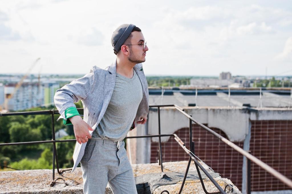 Eine Lösung aus warmem Wasser und Stückchen pflanzlicher Kernseife wirkt oft Wunder. Sanft tupfen statt reiben, anschließend mit klarem Wasser nacharbeiten und trocknen lassen. So vermeiden Sie Ränder, schützen die Faserstruktur und kommen ohne Bleichmittel oder optische Aufheller aus, die Stoffe unnötig strapazieren.